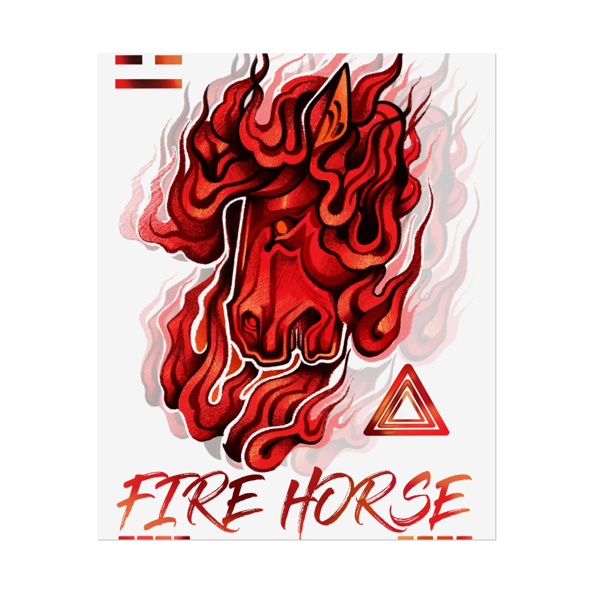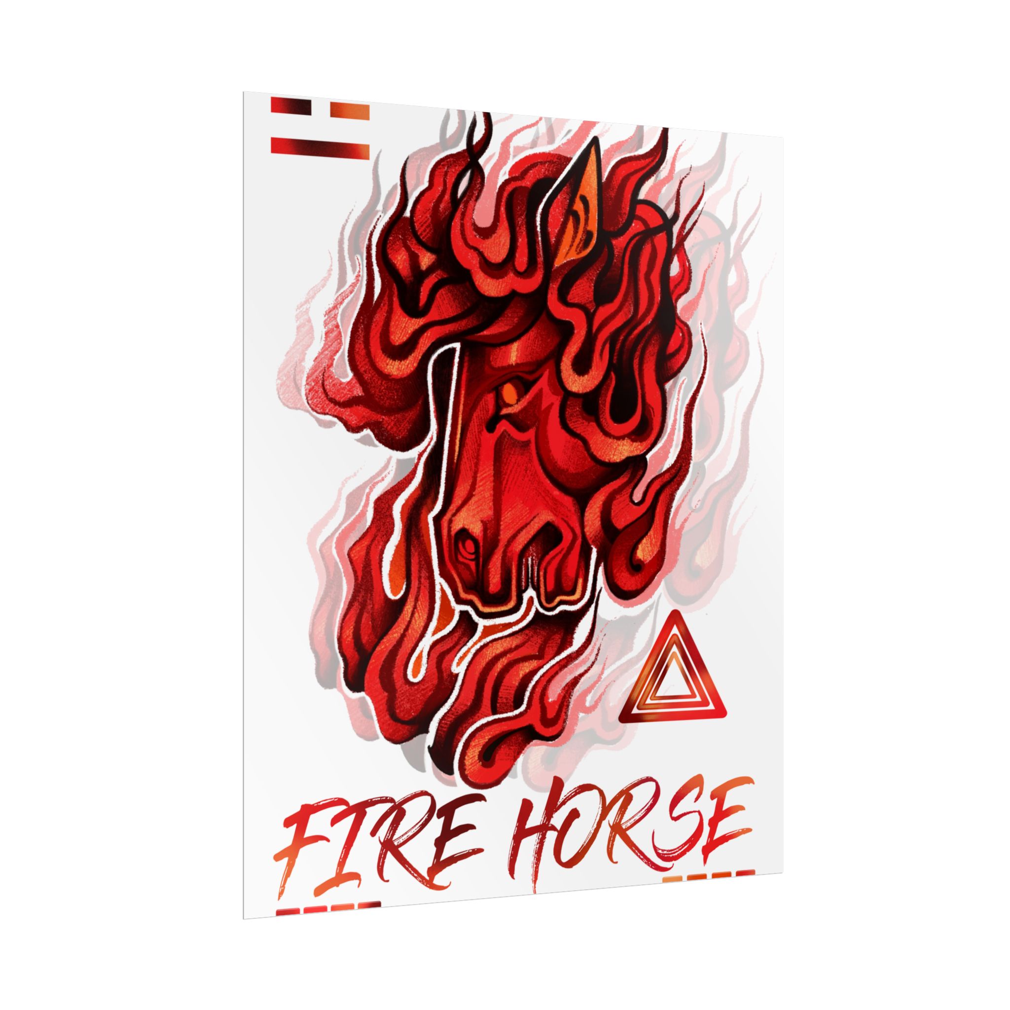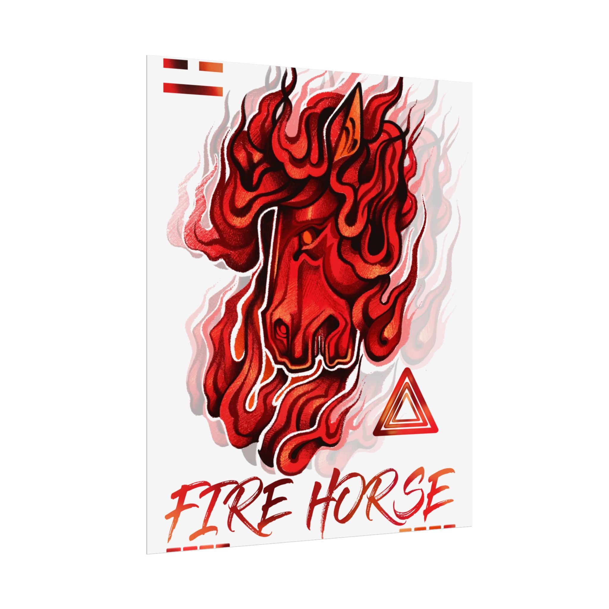 A vivid rolled poster that captures raw energy with a stylized, flame-wreathed horse head in saturated reds and oranges. Printed with museum-quality giclée inks on your choice of fine art, semi-glossy, or matte paper, the artwork keeps its rich tones even with regular light exposure. The textured fine art option recreates the feel of watercolor or etching, while semi-gloss and matte finishes offer crisp detail or a softer, low-glare look. Available in multiple sizes and orientations so it fits a studio wall, dorm room, or gallery layout. Rolled for safe shipping, this poster arrives ready to frame or display with clips for an instant burst of motion and warmth in any space.