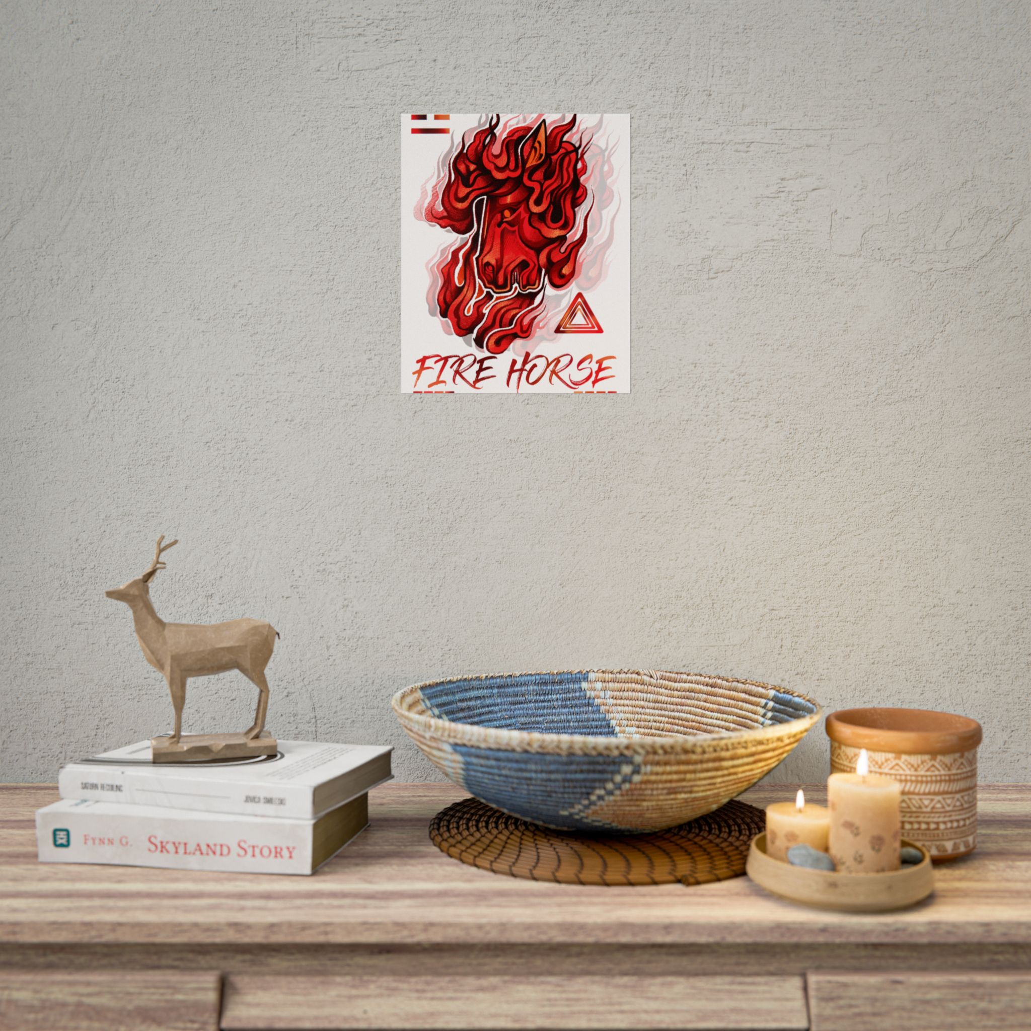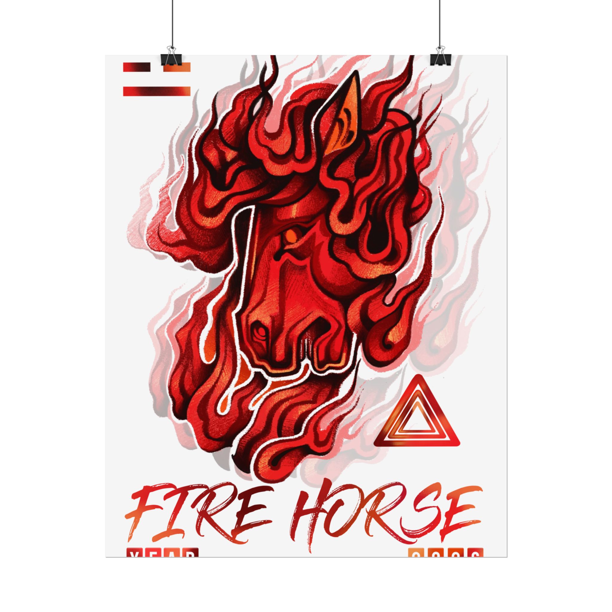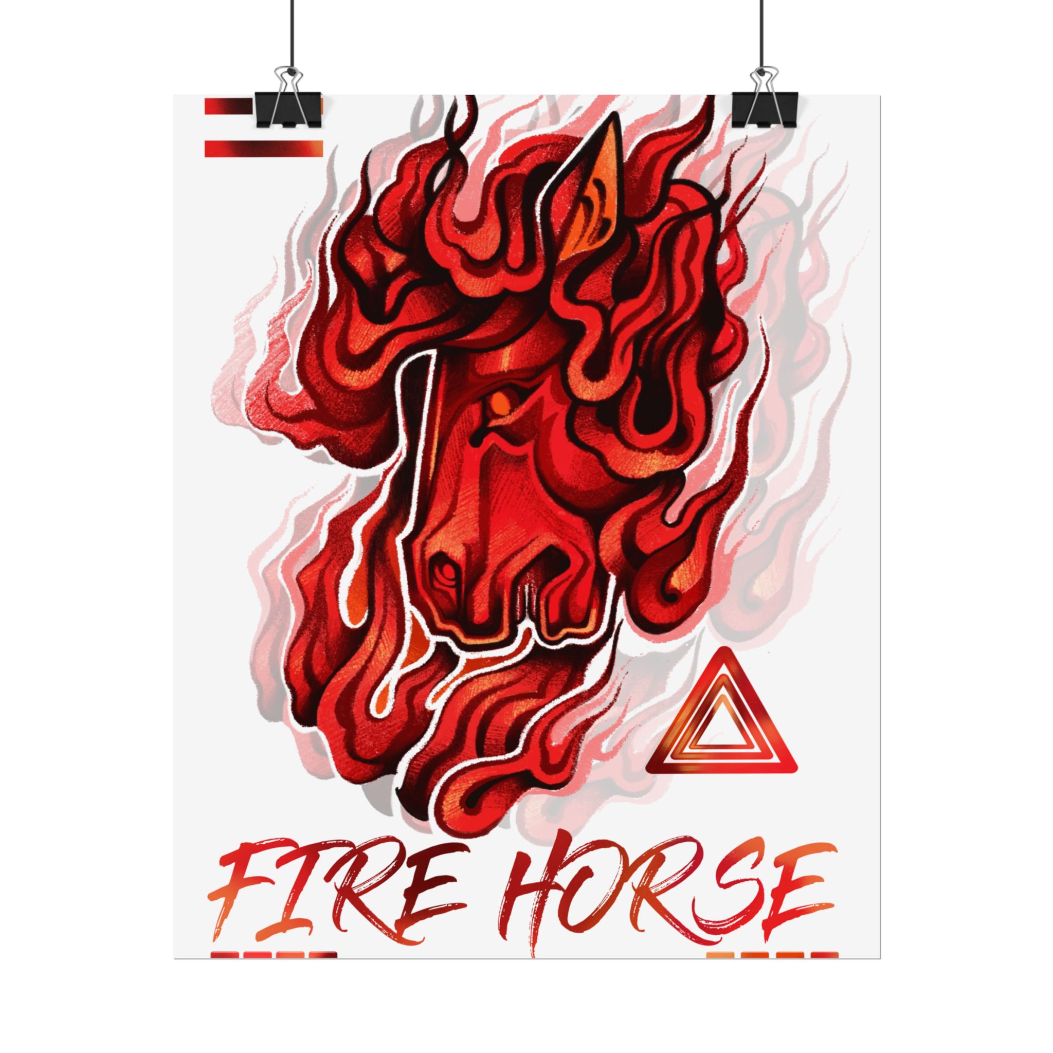 A vivid rolled poster that captures raw energy with a stylized, flame-wreathed horse head in saturated reds and oranges. Printed with museum-quality giclée inks on your choice of fine art, semi-glossy, or matte paper, the artwork keeps its rich tones even with regular light exposure. The textured fine art option recreates the feel of watercolor or etching, while semi-gloss and matte finishes offer crisp detail or a softer, low-glare look. Available in multiple sizes and orientations so it fits a studio wall, dorm room, or gallery layout. Rolled for safe shipping, this poster arrives ready to frame or display with clips for an instant burst of motion and warmth in any space.
